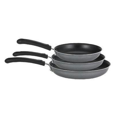 Gray Nonstick Exterior - Nonstick Interior - Riveted Stay-Cool Handles - Glass Covers. 3 Pc Saute Combo 8" 10" 12".